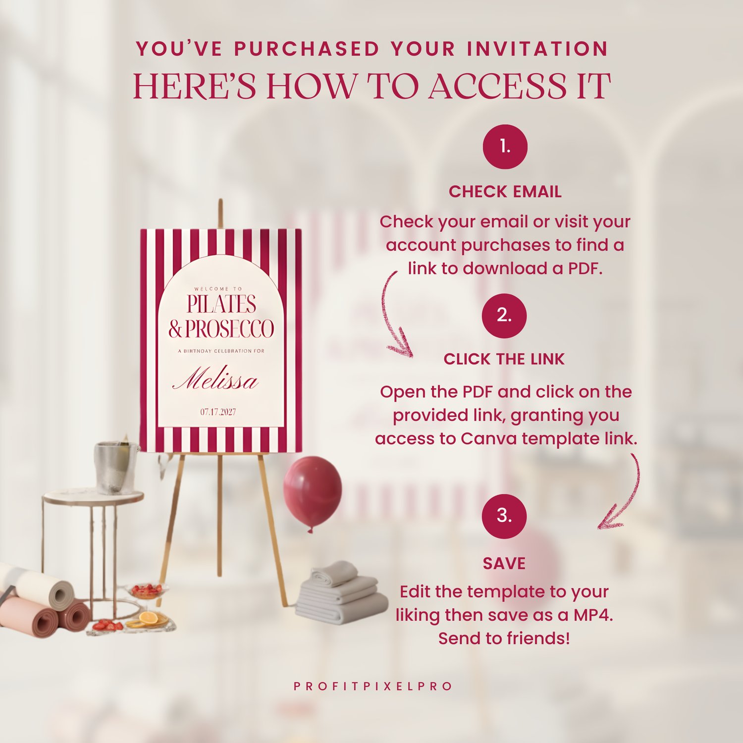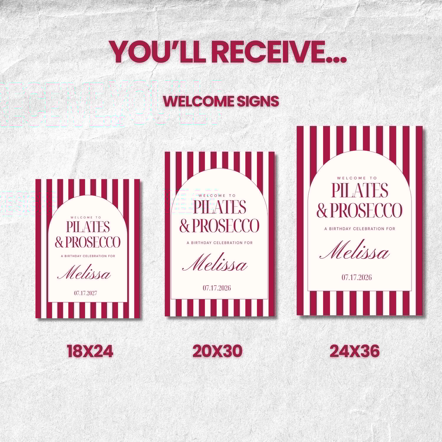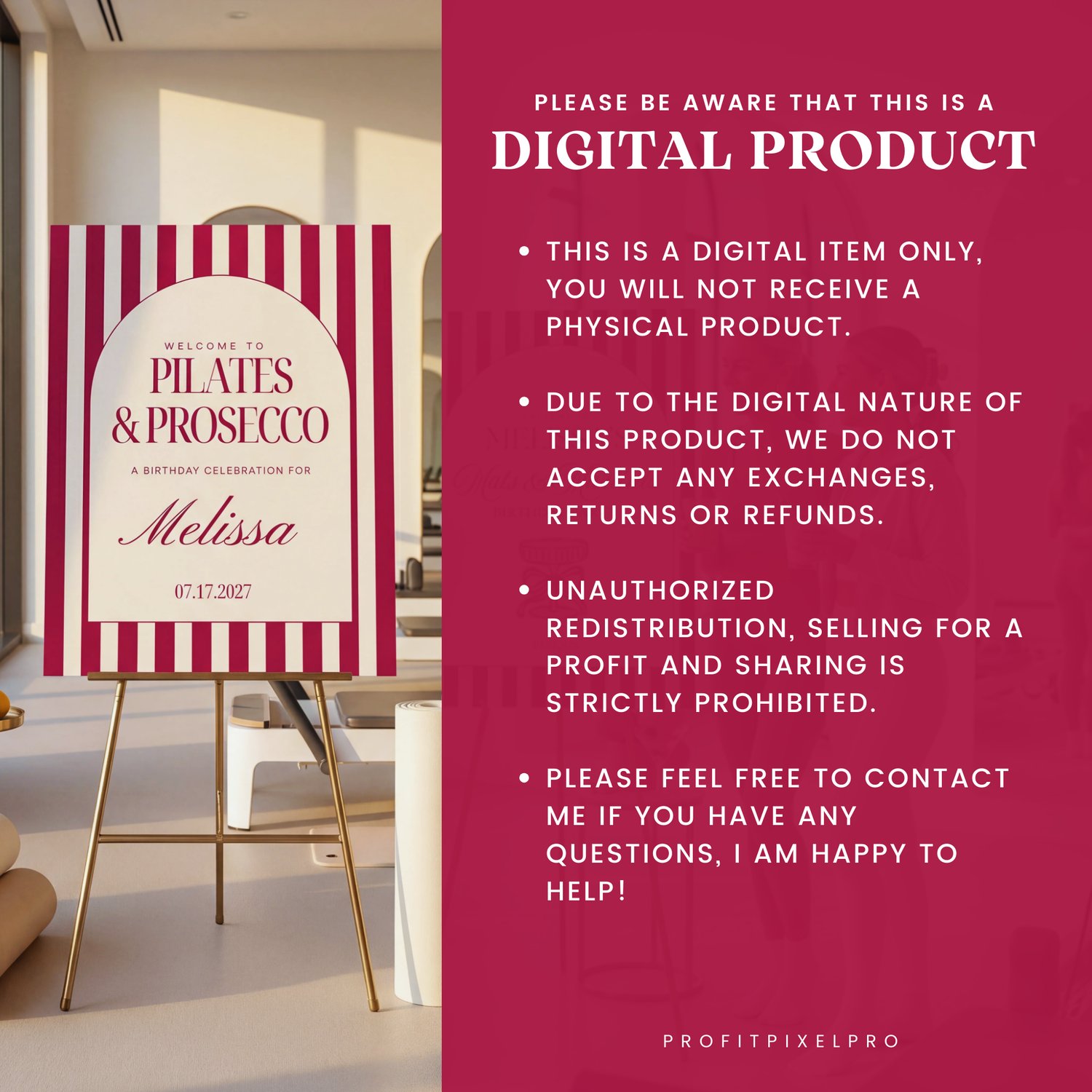 Pilates Welcome Sign Template | Pilates & Prosecco Birthday Party | Printable Party Decor | Digital Download