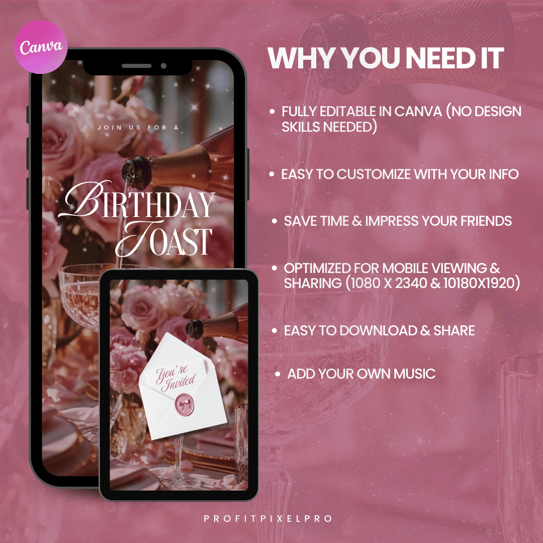 This stylish design is part of our best-selling invitation templates collection—crafted for modern party hosts who want to sip, slay, and celebrate in style.