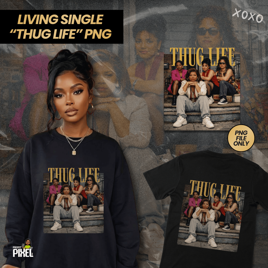 This Living Single–inspired “Thug Life” PNG is a bold, nostalgic shirt design made for the girls who know the culture. It blends classic sitcom energy with street-style attitude—because these women weren’t just roommates… they were icons.