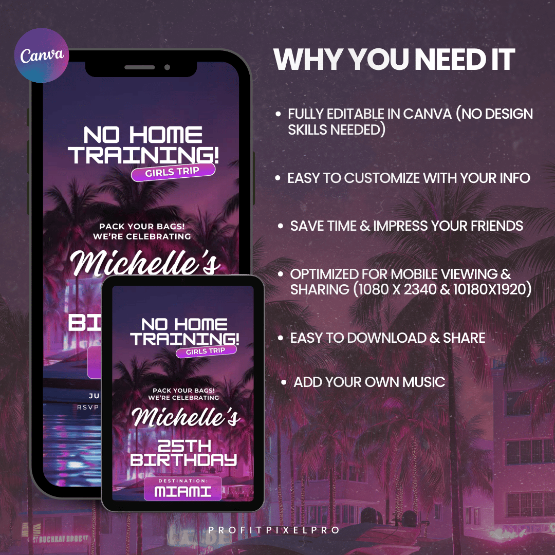 Animated Birthday Trip Itinerary Template | Girls Trip Digital Invite | Canva Editable Travel Schedule