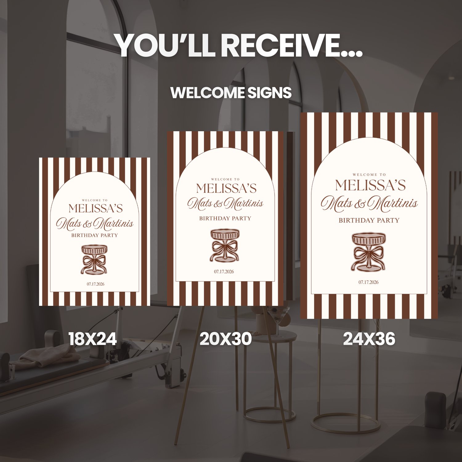 You’ll receive print-ready pilates welcome sign files you can download instantly and print in the size you need.