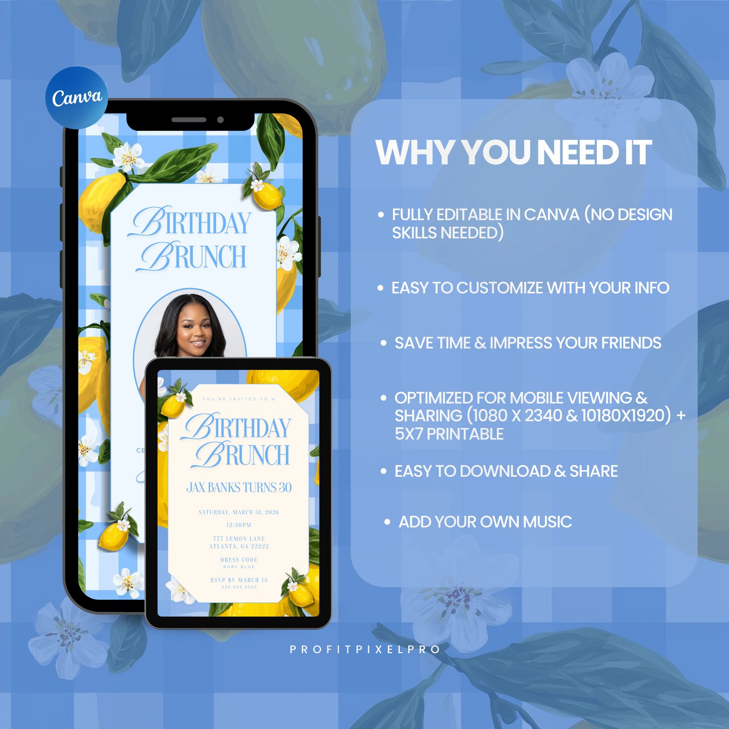 Birthday Brunch Invitation Template | Editable Canva Invitation | Animated Evite